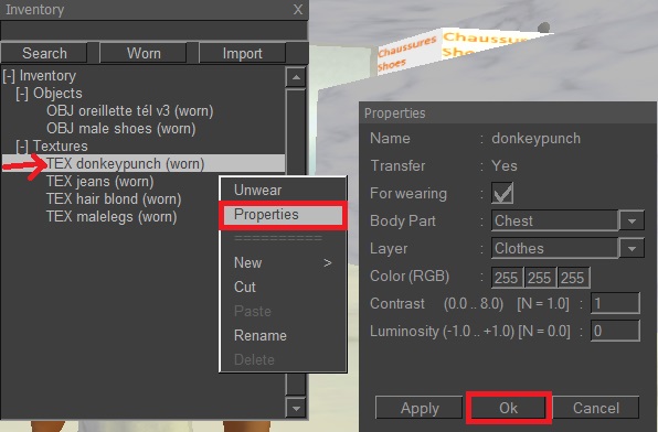 To remove an item of clothing, right-click on the line and choose the menu UNWEAR.