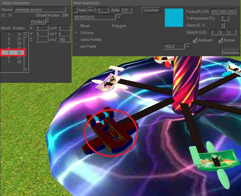 Ein Skript kann die Eigenschaften eines Meshes über seine Nummer ändern: Position, Drehung, Farbe, Transparenz, Licht, usw.
