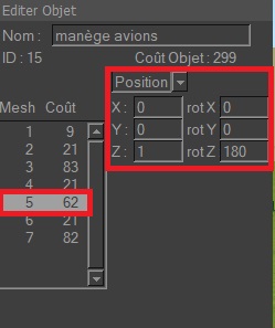 Il est possible de changer la position et la rotation d'un mesh à l'intérieur de son objet,