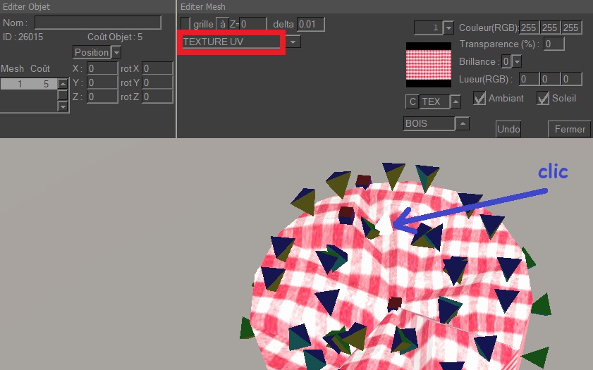 To do this, click on a point in the mesh (clic 1), then click on the texture where you want it to match (clic 2).